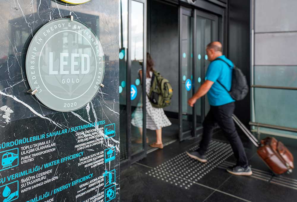 Sürdürülebilirlik alanındaki en önemli yeşil bina sertifikalarından biri olan LEED Sertifikası ile ilgili süreçlerimizi; Terminal Binası ve Ali Kuşçu Camii için LEED Gold, Hava Trafik Kontrol Kulesi ve Devlet Konukevi için LEED sertifikası alarak sonuçlandırdık. Bu sertifika, binalarda önemli ölçüde enerji ve su tasarrufu yapıldığını tescillemesi nedeniyle önemlidir.