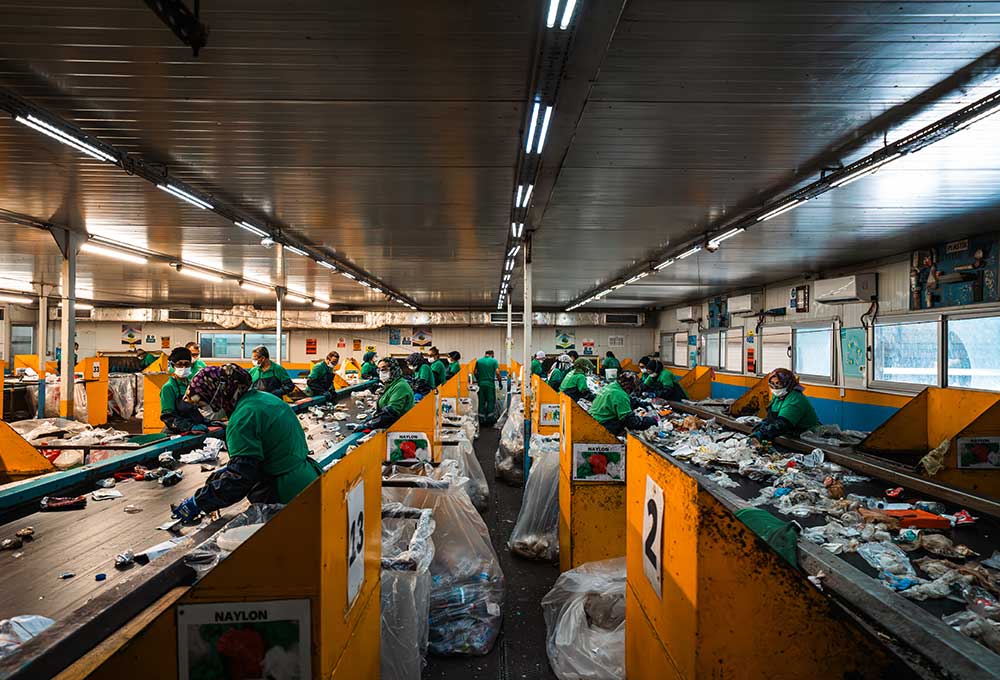 “Sıfır Atık” hedefimize uygun olarak yapılandırdığımız atık yönetim sistemimiz ile havalimanındaki paydaşlarımızla aynı anlayışı benimseyerek çalışmalarımızı yürütüyoruz. Bu kapsamda, atığın en az düzeyde oluşması önceliğimiz olmakla birlikte, kaynağında ayrıştırma temelinde geliştirilen atık yönetim sistemimizi, dörtlü ayrıştırma konteynerleri ve geçici atık depolama alanları aracılığıyla süreci destekliyor; İGA İstanbul Havalimanı’nda kurulu 240 ton/gün kapasiteli yarı otomatik ayrıştırma tesisimiz ile de atıkların nihai geri dönüşüm çalışmalarını yürütüyoruz. Güncel durumda, toplam atığın üçte birini lisanslı firmalar aracılığıyla geri dönüşüme dahil ederken, diğer üçte birlik kısmını da enerji kazanım tesisine gönderiyoruz.