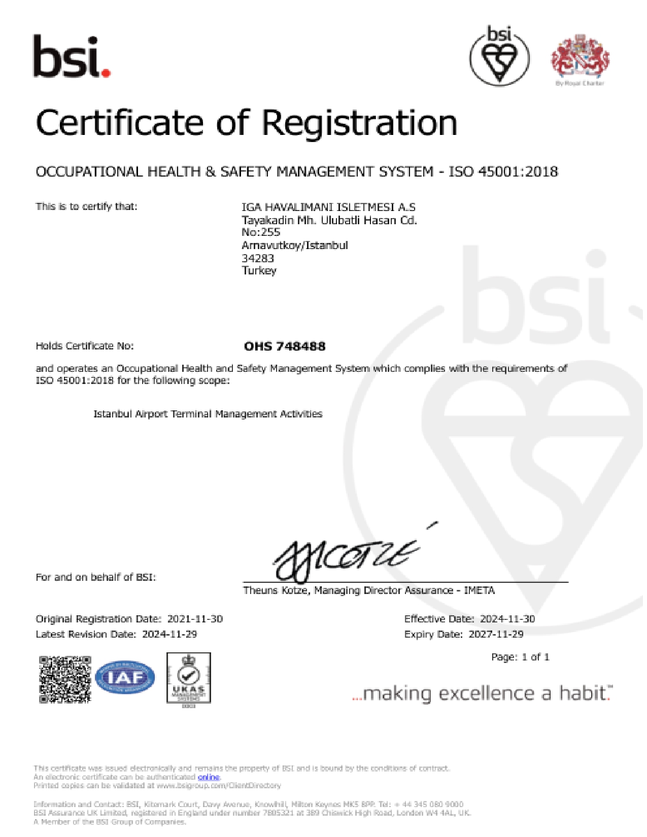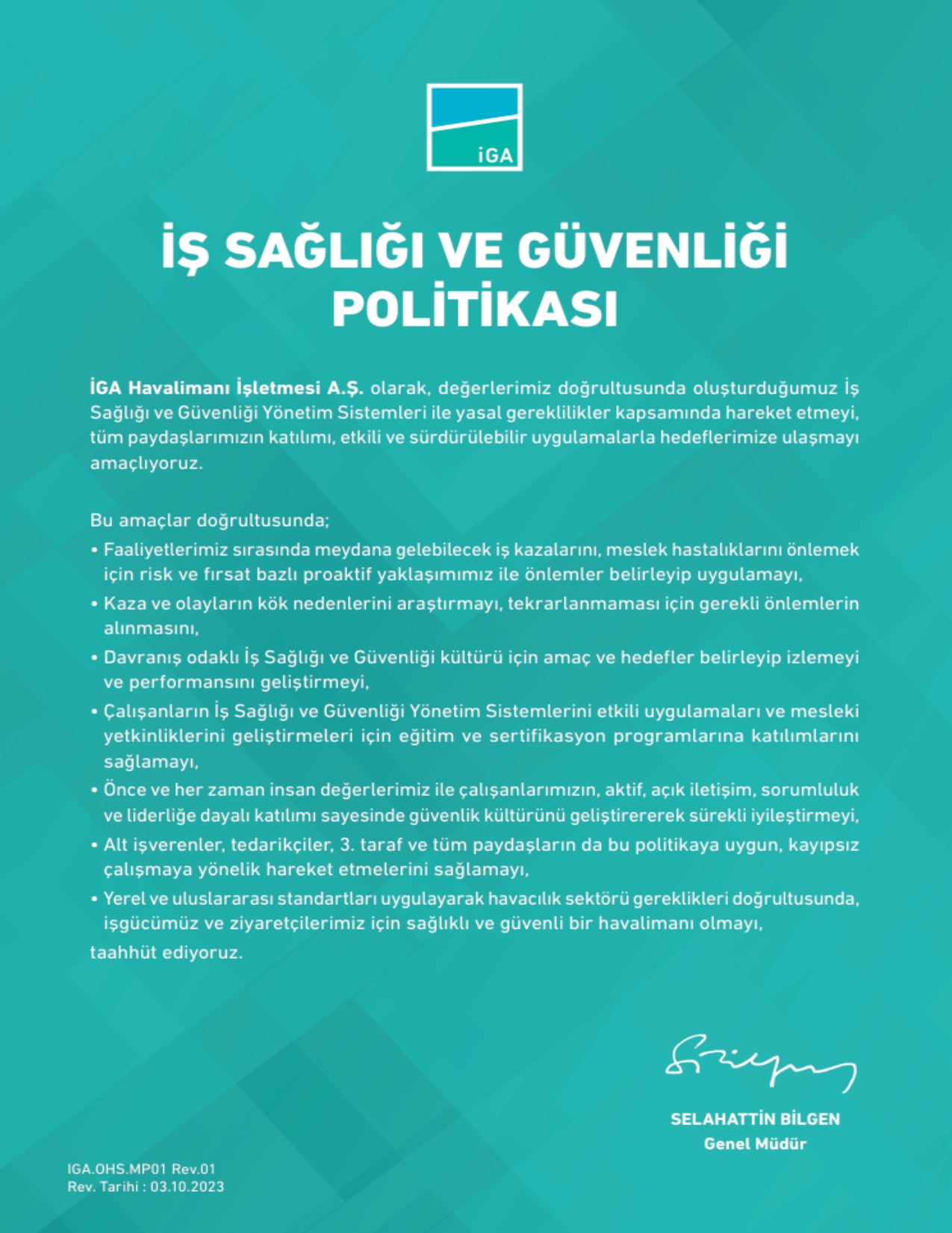 Uluslararası sertifikasyon ve denetimlerle doğrulanan İGA İSG Yönetim Sistemi kapsamında, havalimanında herkesin sağlık ve güvenliğini sağlamak için;
